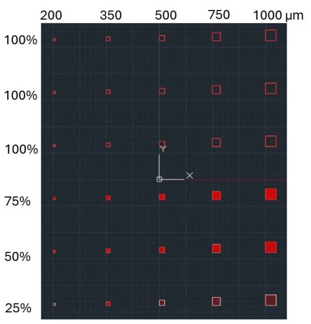 50um Tall Pick and Place Structures 0.2 mm to 1 mm - Fully Transparent